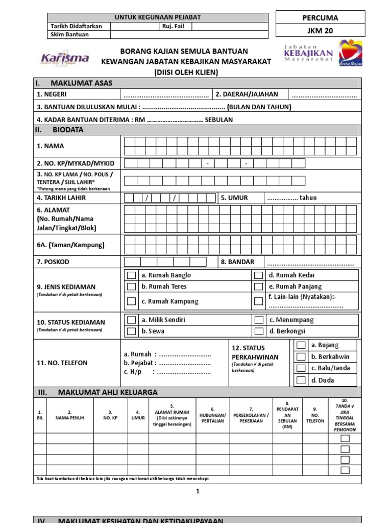 Jkm 20 Borang Kaji Semula Bantuan Pdf